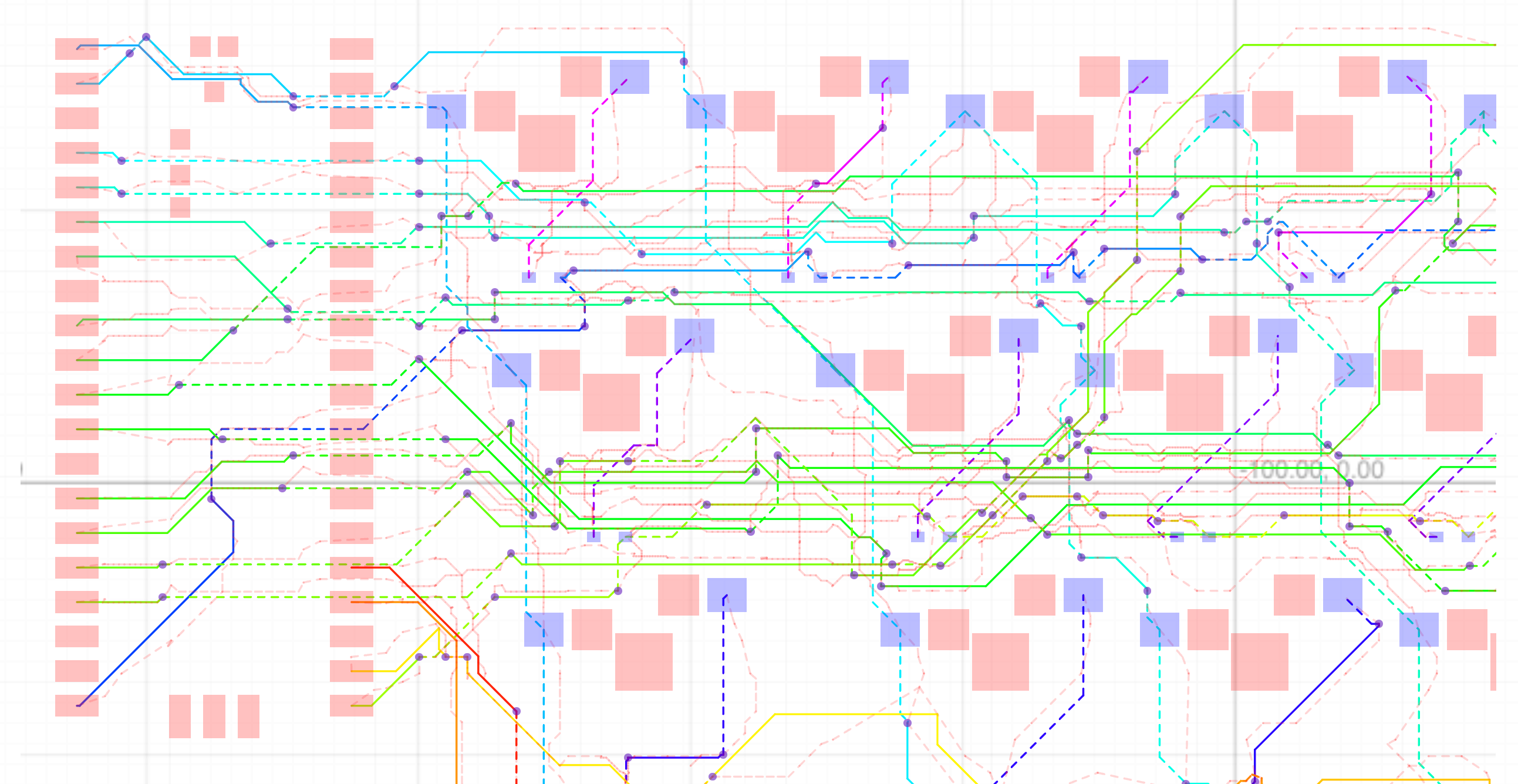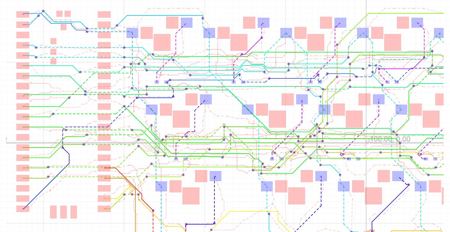 Being able to overlay different inputs/output visualizations of each stage of the algorithm helps you understand the context surrounding the problem you’re solving. I often ran into issues at downstream stages (often our “high density routing” stage) that could be solved by improving the output of previous stages.